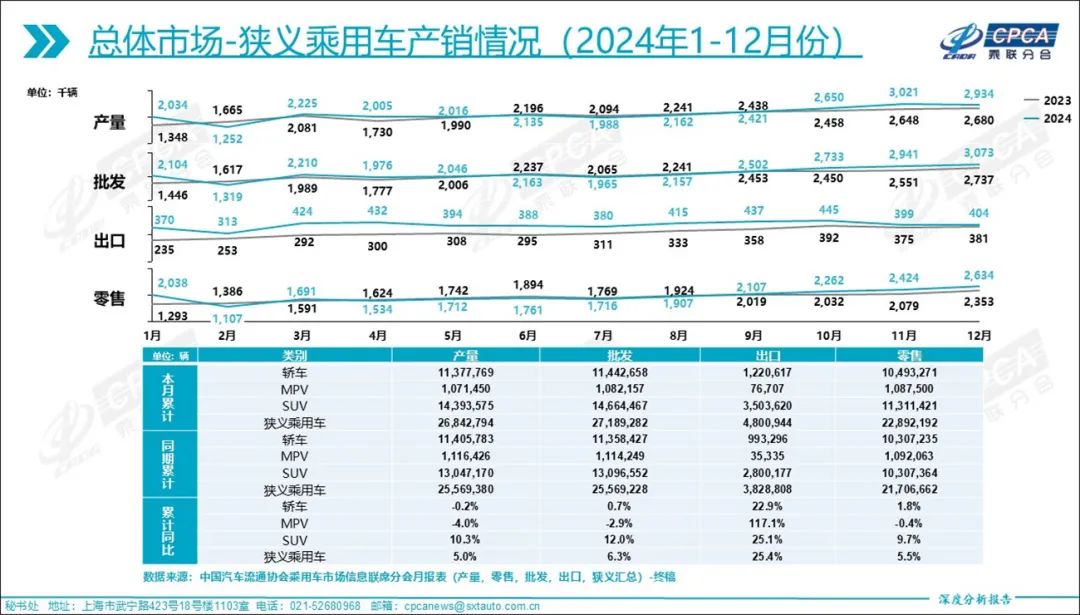 此前,对于2024年车市的整体情况,即:中国乘用车市场累计零售销量为2289.4万辆。乘联会秘书长崔东树也说了,“2024年全国车市走势呈现U型态势,下半年的以旧换新和报废更新补贴政策力度超强,推动2024年全年乘用车市零售销量同比增长5.5%。”
