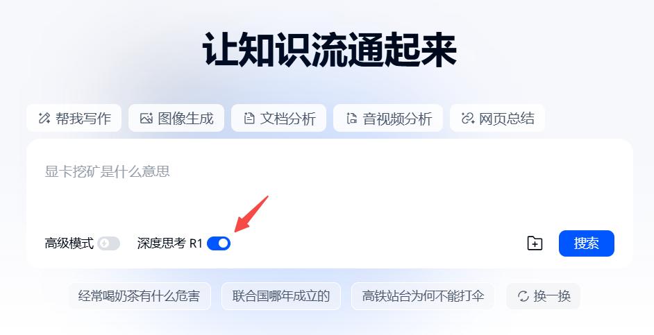 当前,在「天工AI」PC端,用户只需在界面上勾选“深度思考 R1”按钮即可,输出的答案均为联网搜索后的答案。