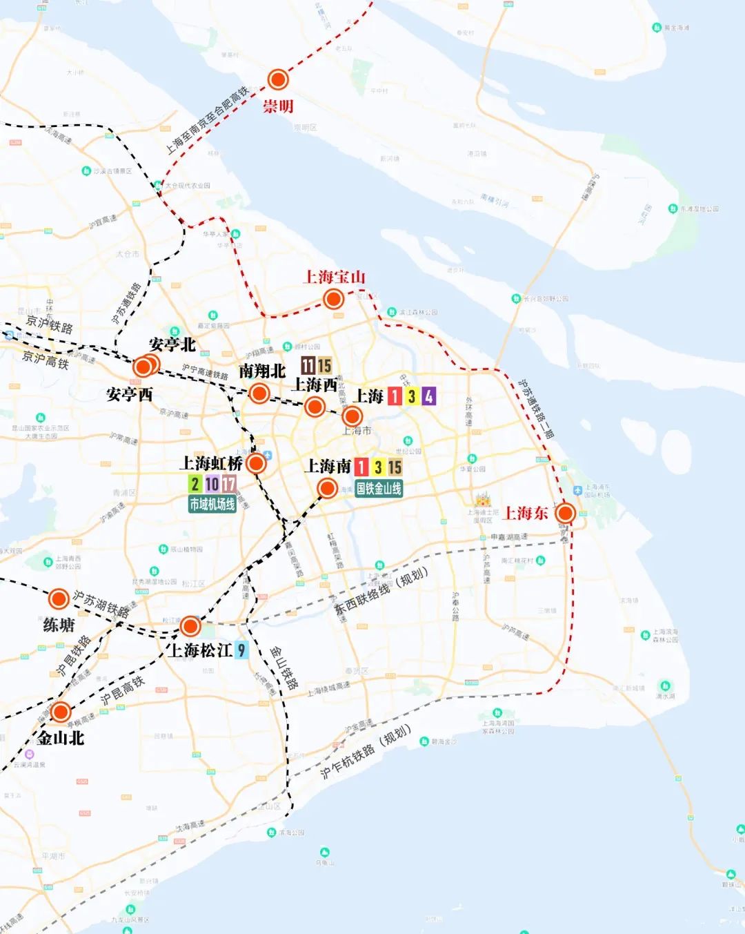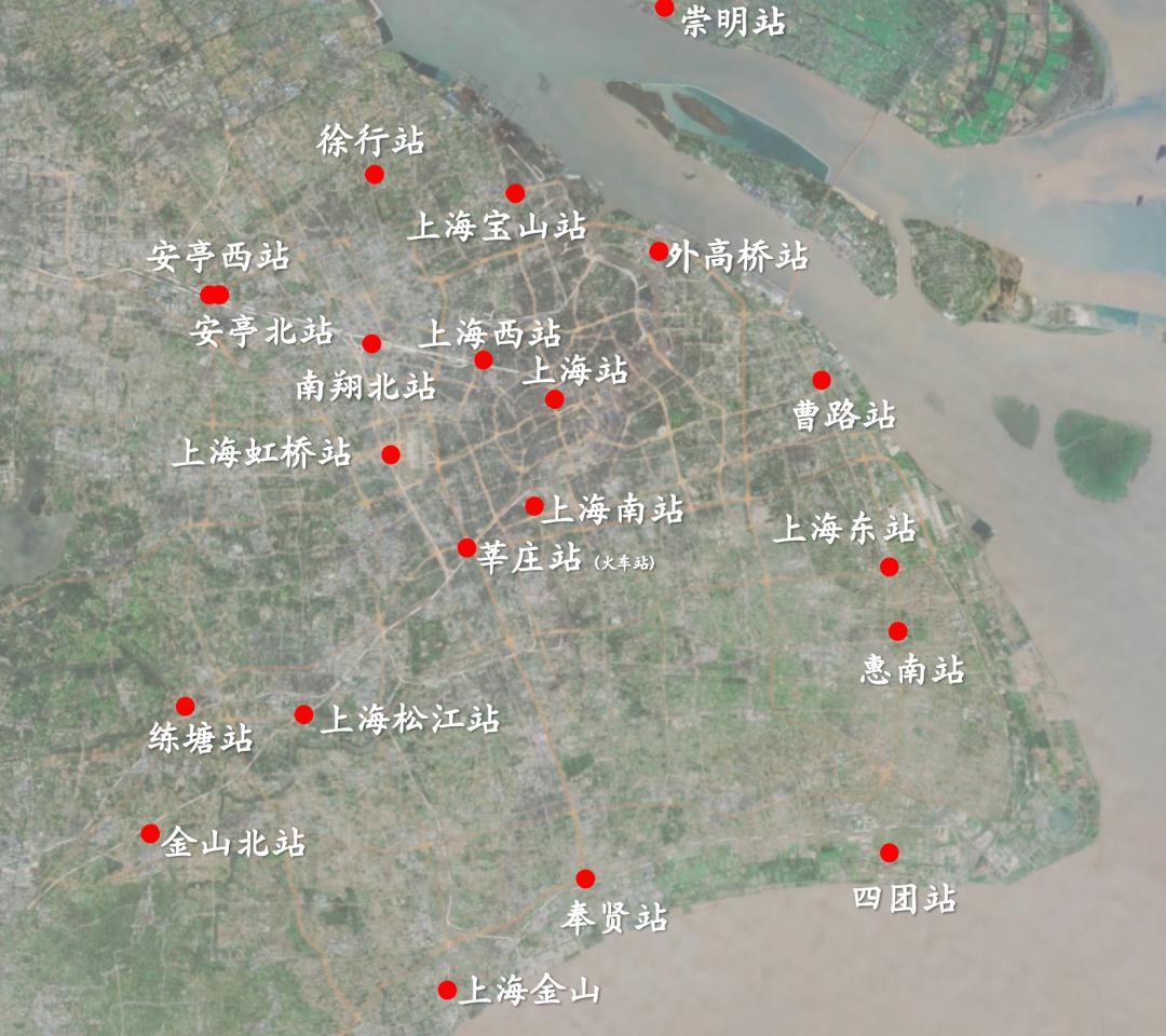 至此,上海已建成的10座高铁站和3座在建高铁站版图如下: