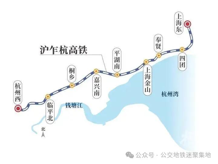沪乍杭高铁在上海境内设置上海金山、奉贤和四团三座车站,连接沪苏通铁路二期接入上海东站。