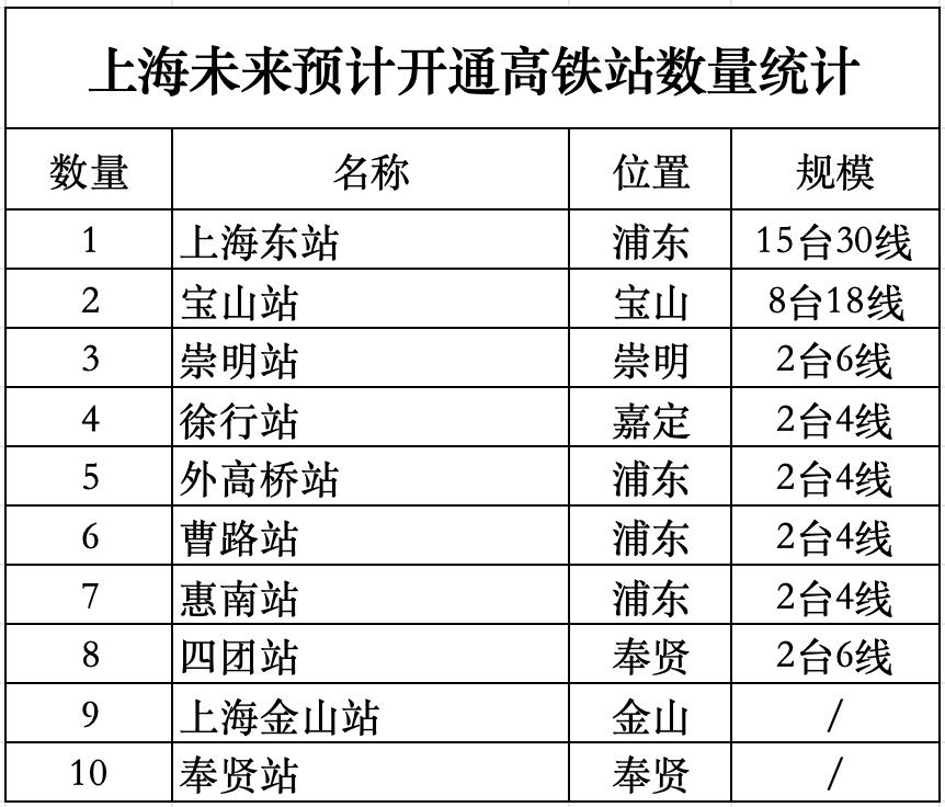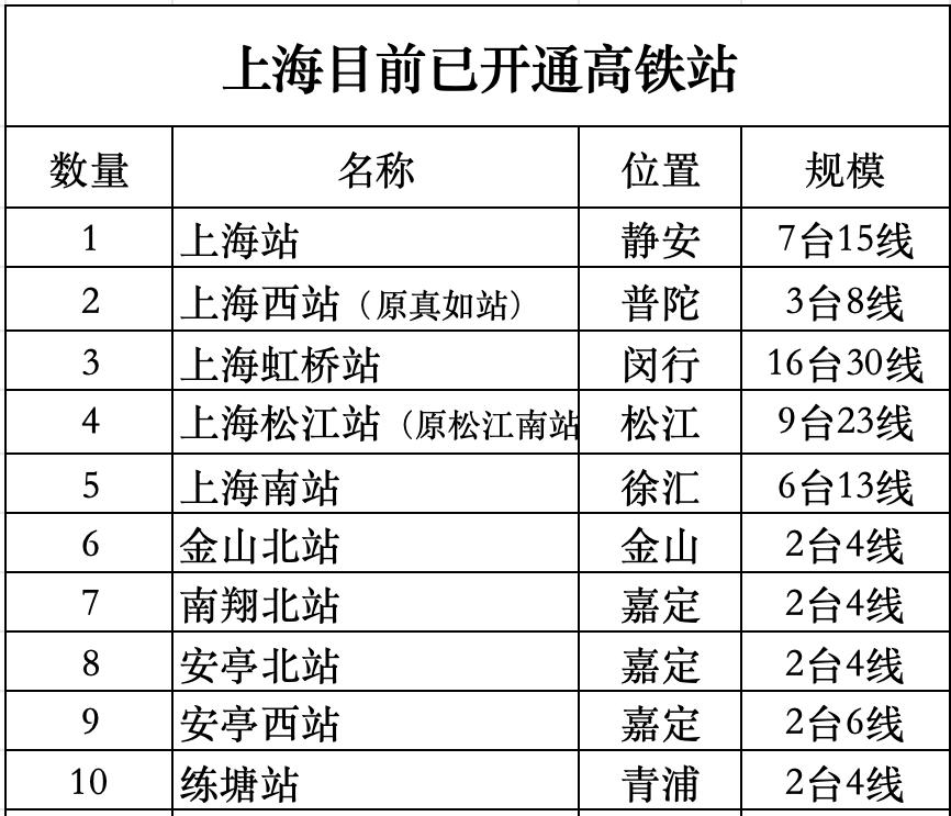截至目前,上海一共拥有10个高铁站,大站4个,小站6个。而在这10个高铁站里,有2个是全新亮相的。