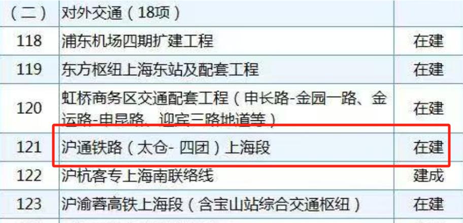 首先是沪通铁路二期,打开上海发布公众号,在2025年上海市重大工程清单里,我们可以看到沪通铁路二期(太仓-四团)上海段为在建状态。