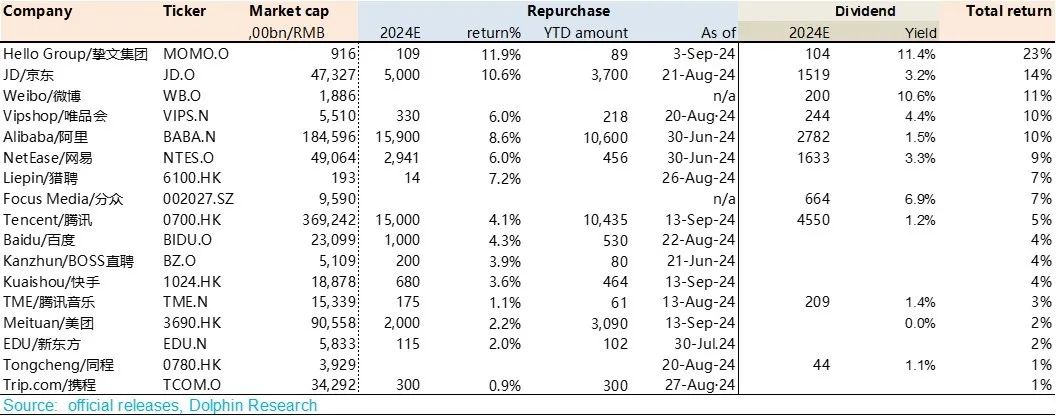 “中国资产上,海豚君个人觉得已经没有进一步悲观的必要,2024 年已经是宏观向下,股价向上了,经过几年的重估,中国互联网资产 10XPE 是标配。但超越短期经济周期,中国很多互联网资产手握海量现金、有市占率提升逻辑,走出 10%+ 长期 EPS 增速毫无问题。”
