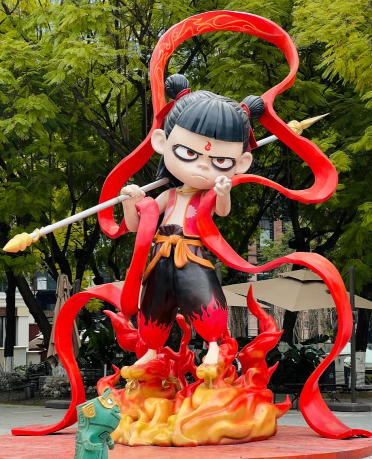 《哪吒2》火了以后,好多地方都开始抢哪吒了。四川宜宾、天津这些跟哪吒沾边的地方,都成了热门打卡地。在四川成都,交子大道交子之环的巨型哪吒像,双子塔夜间的哪吒和敖丙拜年大屏等,都刷爆了小红书。