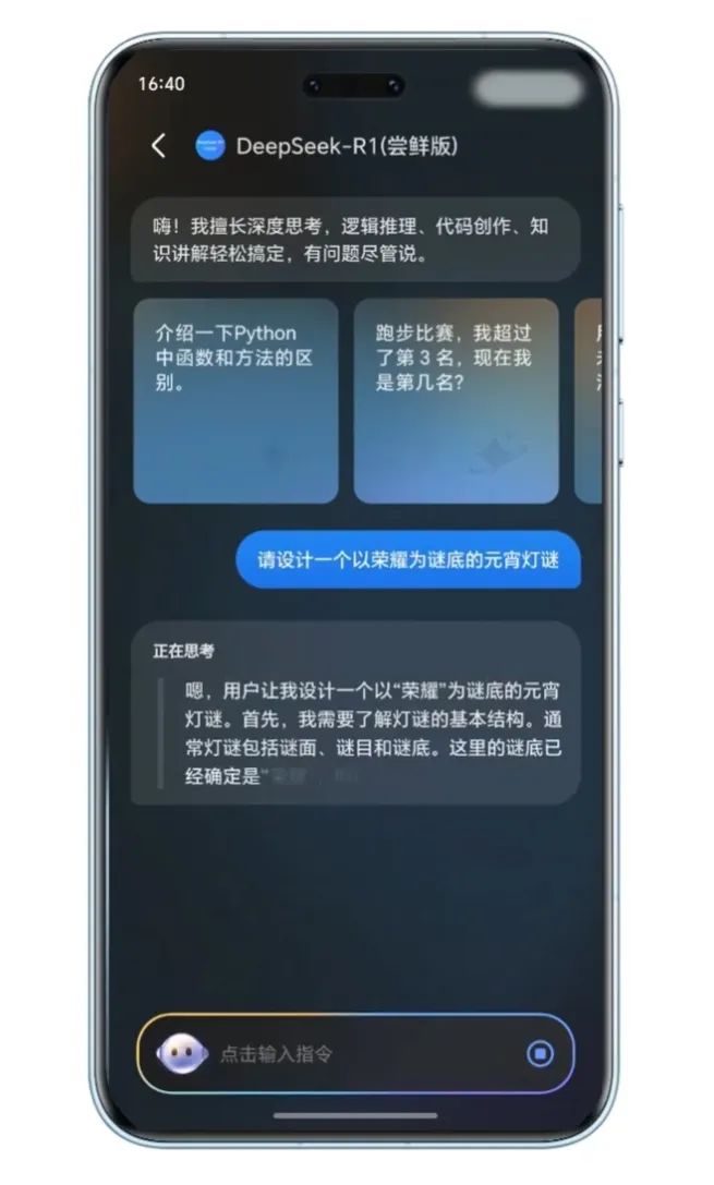 ▲荣耀YOYO助手中的DeepSeek-R1(尝鲜版)界面
