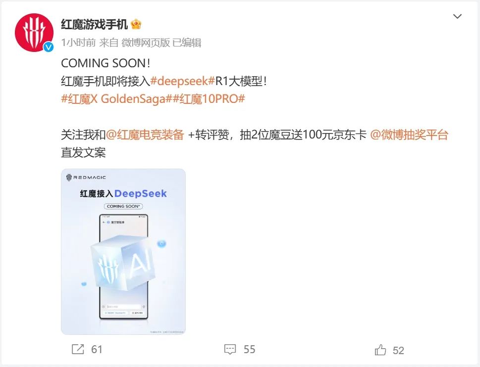 2月10日下午,中兴旗下努比亚和红魔两个手机品牌也相继宣布将接入DeepSeek-R1大模型,其中努比亚宣布旗舰Z70 Ultra将内嵌全尺寸DeepSeek-R1模型。