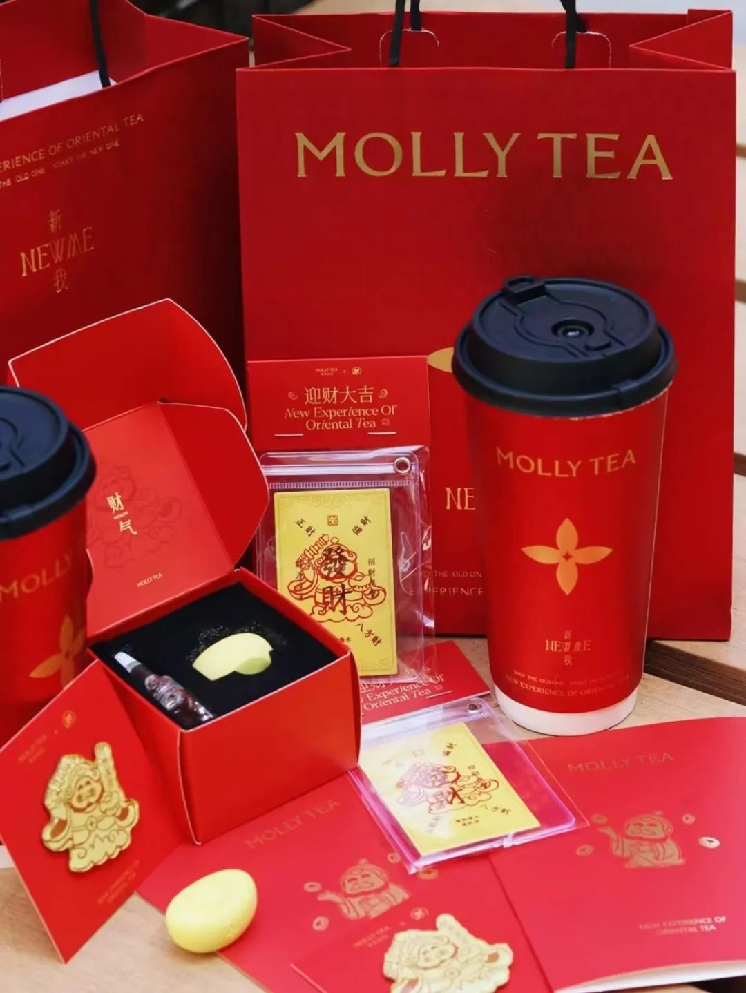还有不少品牌将目光聚焦于春节本身所蕴含的丰富文化元素,通过打造特色营销活动,与消费者建立起情感共鸣。例如,茉莉奶白则选择和北高峰联名推出迎财神套餐,搭配财神卡和冰箱贴,精准抓住初五迎财神这一传统习俗,将财神元素巧妙融入产品营销中,满足了消费者对于节日仪式感的追求。
