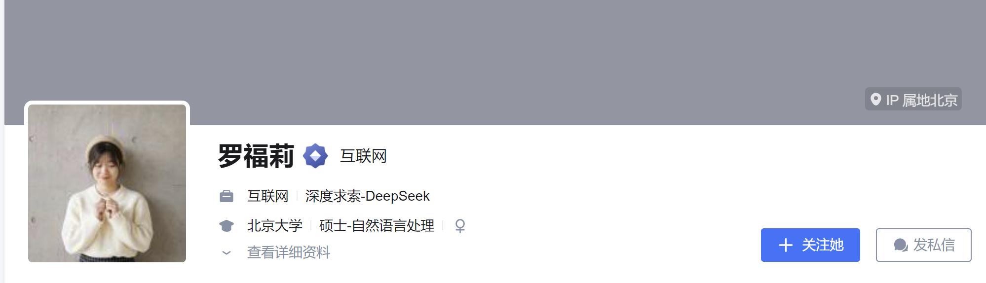 小米在行业也以“性价比研发”闻名,例如进军汽车行业后,仅投入大约130亿元便开发出销售火爆的SU7车型(加上渠道建设、人员成本等,总成本约为300亿元),罗福莉与小米集团的属性十分契合。然而罗福莉的高中班主任在李波接受采访时表示,罗福莉还没有决定加入小米。目前罗福莉的知乎平台认证依然是深度求索-DeepSeek,看来她并未被千万年薪打动。