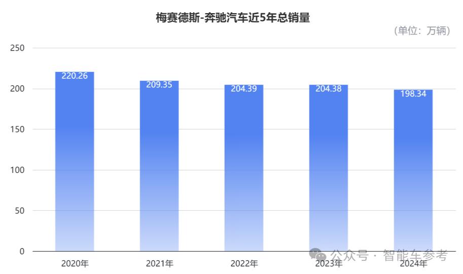 2024年,奔驰汽车总销量为198.34万辆,同比下滑3%。