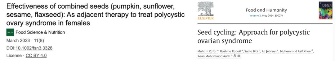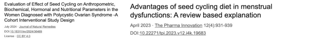 来自印度的两篇论文,分别对290名多囊卵巢综合征患者进行了对照试验,综述分析了种子循环法对女性月经周期紊乱(如PCOS相关月经不规律)的改善作用,结论为「配合饮食控制的种子循环疗法有望成为一种PCOS治疗策略/可能有积极作用」。