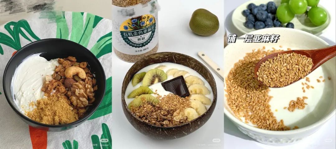 酸奶碗、燕麦碗、果昔碗、健康面包,那些你学着小红书博主制作和摆盘的中ins风食物,都是亚麻籽潜入你生活的实证。