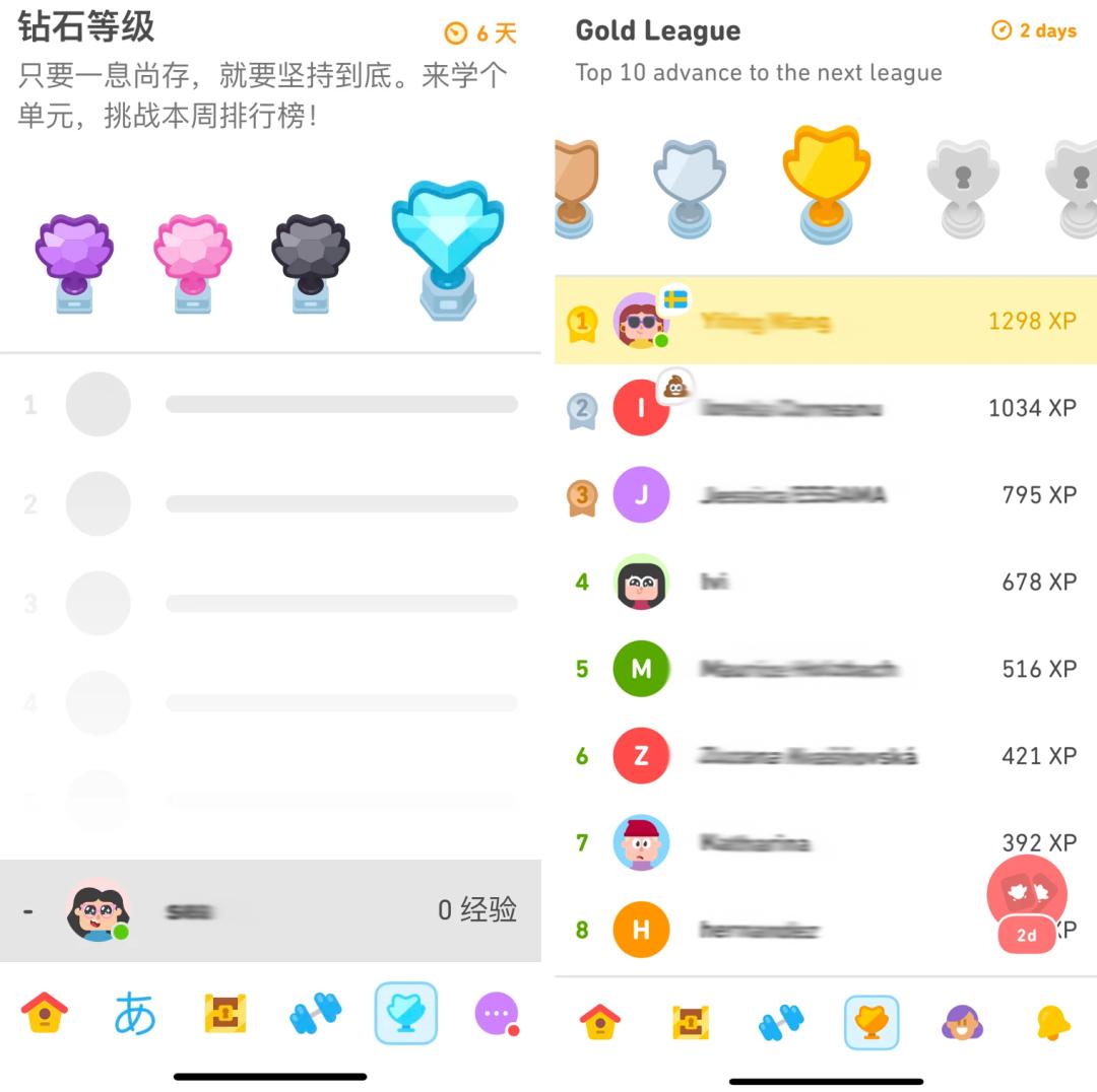 然而,多邻国并没有完全复制《开心农场2》的联赛设计。为了避免给语言学习带来不必要的复杂性,他们将排行榜设计得更加轻松和流畅。用户会自动被纳入排行榜,只需持续参与日常的语言学习,就有机会晋升到更高级别的联赛榜首。这种设计不仅保持了游戏机制的吸引力,还比《开心农场2》更为简洁。