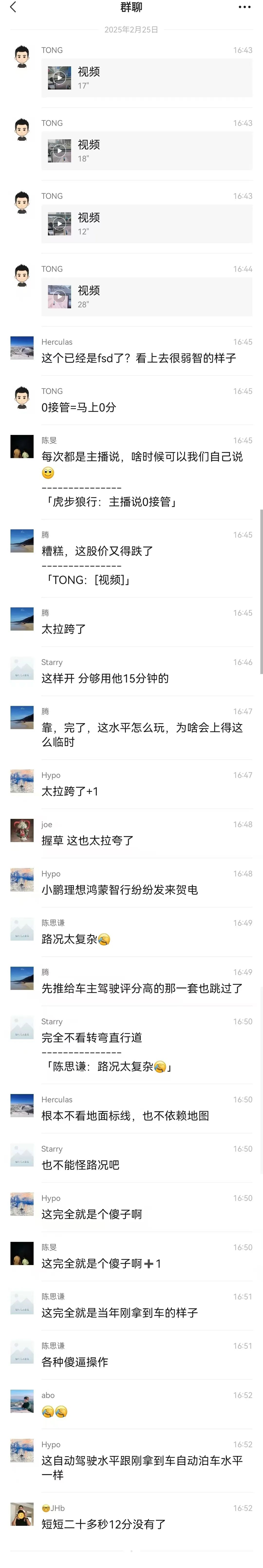 在视频和转发群里,特斯拉FSD的效果评价也褒贬不一。既有感慨于避障丝滑熟练、近似人驾的夸奖希冀,也有对闯红灯、压实线等行为的嗤之以鼻。