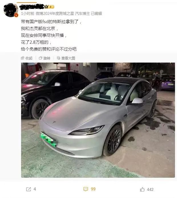 当特斯拉官方资讯宣布“软件更新2024.45.32.12已开始分批次推送”,短视频平台上立即涌现“特斯拉FSD入华”热搜——有人连续开了四个多小时直播,有人将FSD版车型租金炒到两万多。