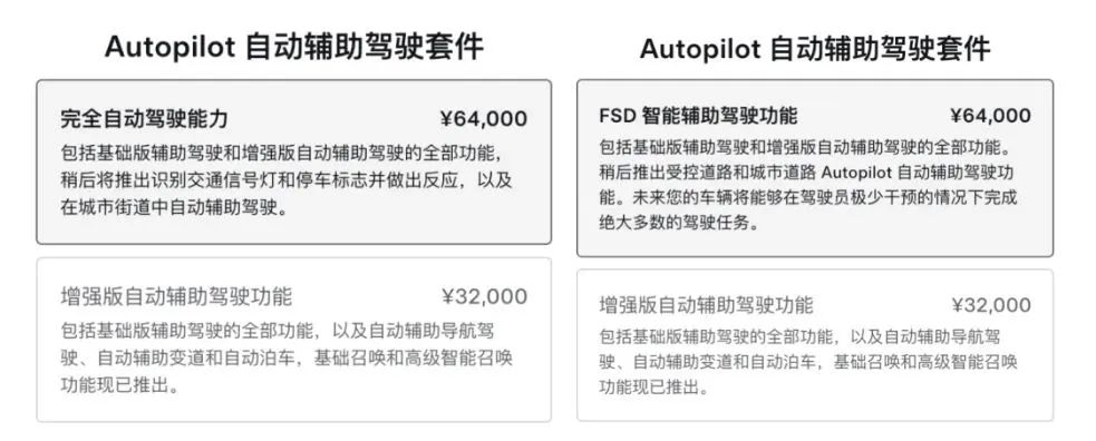 6.4万元的FSD选装价格,高于任何本土厂商的方案。甚至连实现自动辅助变道、自动泊车等基础智驾项目的“增强版自动辅助驾驶功能”EAP,国内价格都高达3.2万元。