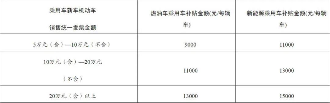 对报废上述符合条件旧车并购买新能源乘用车的,补贴2万元;对报废上述符合条件燃油乘用车并购买2.0升及以下排量燃油乘用车的,补贴1.5万元。