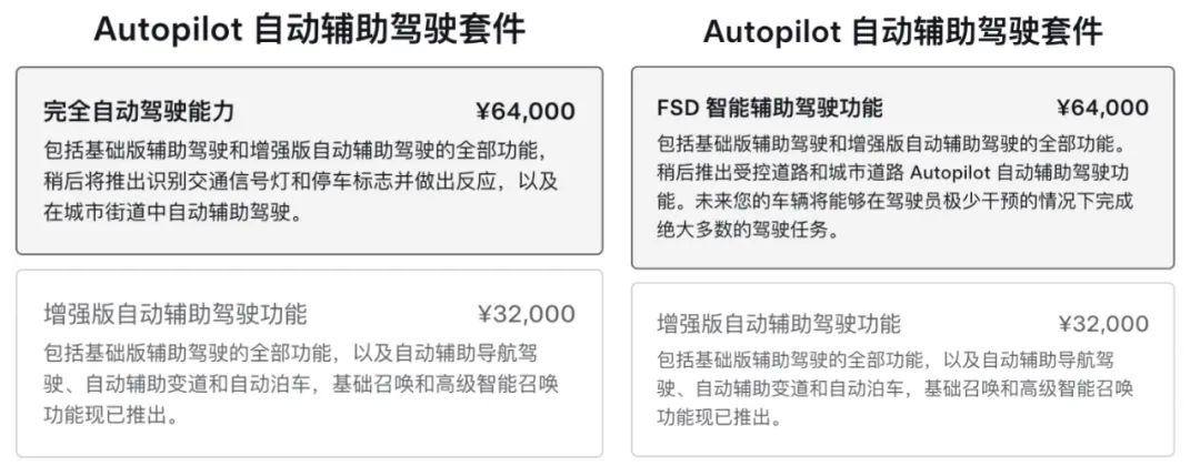 值得一提的是,对于本次更新,特斯拉官方客服向《每日经济新闻》记者表示,使用本次更新功能需购买价格为6.4万元的FSD智能辅助驾驶服务。该客服明确告诉记者,本次更新不同于美国市场的FSD(Full Self-Driving),无法实现无人自动驾驶。此外,本次OTA更新后,特斯拉中国官方将FSD称呼从“完全自动驾驶能力”改为“FSD智能辅助驾驶功能”。