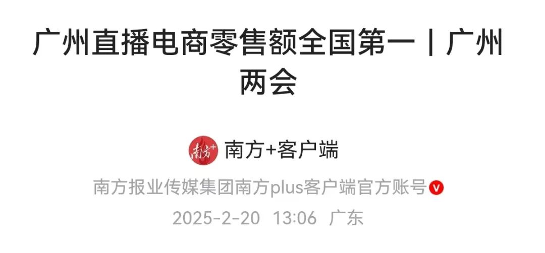 近日召开的广州市两会,透露出一个数据:2024年,广州直播电商零售额全国第一,相关消息登上热搜。