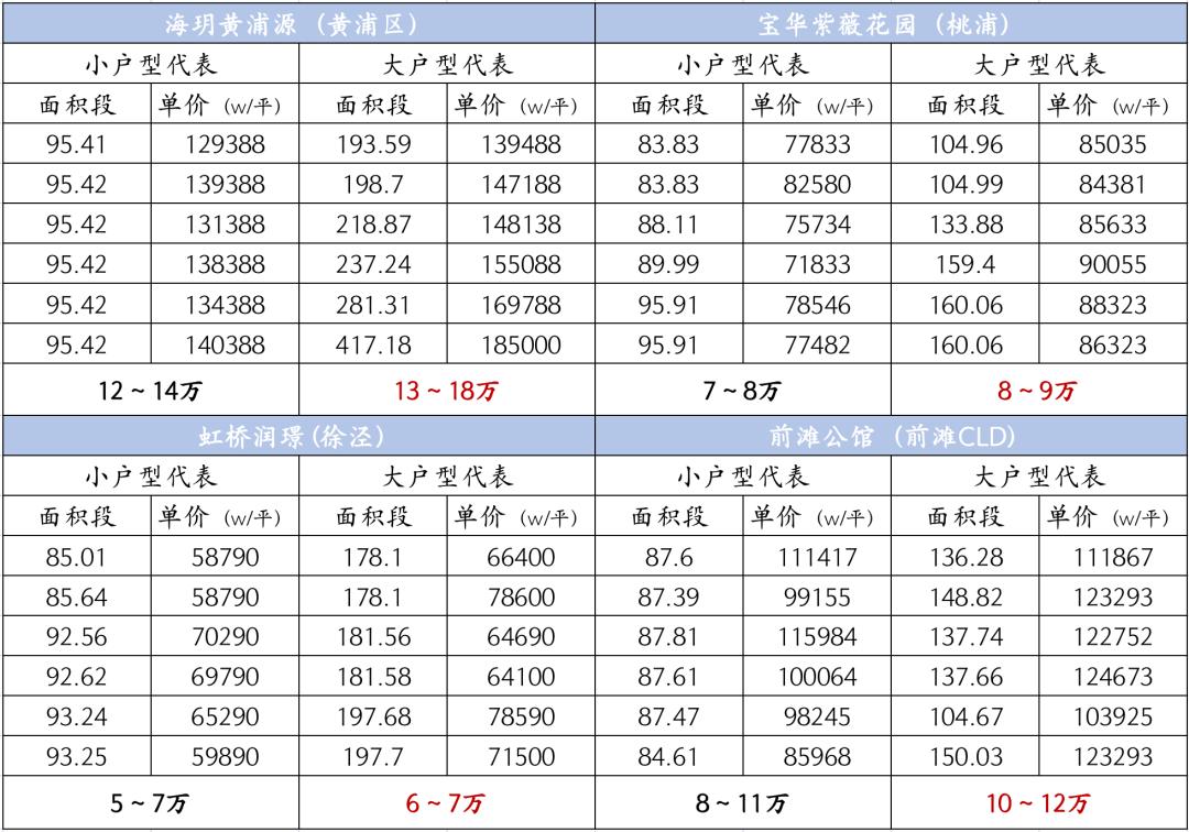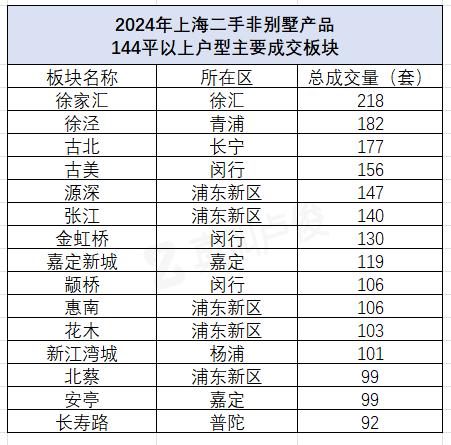 还有郊区徐泾、嘉定新城和安亭等板块,天然存在大量的大面积户型。