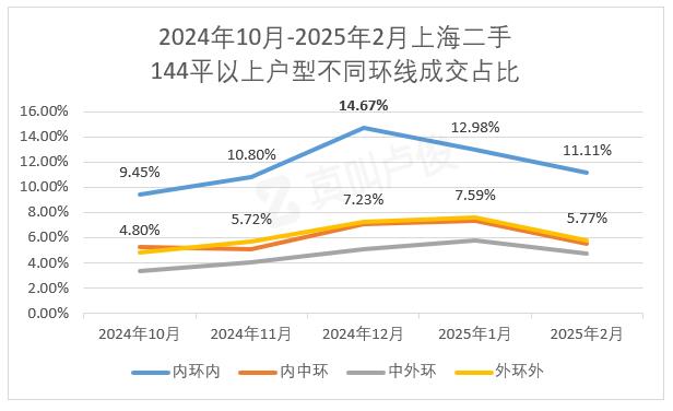 我们看到,去年12月到今年2月,144平以上的产品挂牌和成交量都有一定上升。