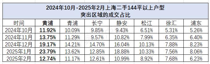 浦西方面,长宁、静安还有徐汇也都是144平以上房源的主要成交区。