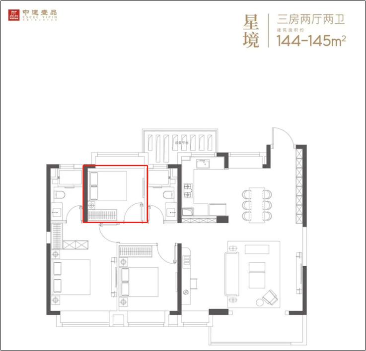 如果按照144平、75%的得房率来算,第三个房间一下子面积翻倍,能有15平起步,实用性顿时就强了许多。