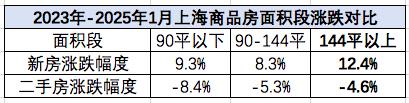 结合2023年到2025年1月,这25个月的官方统计数据来看,房价涨跌和面积段息息相关。