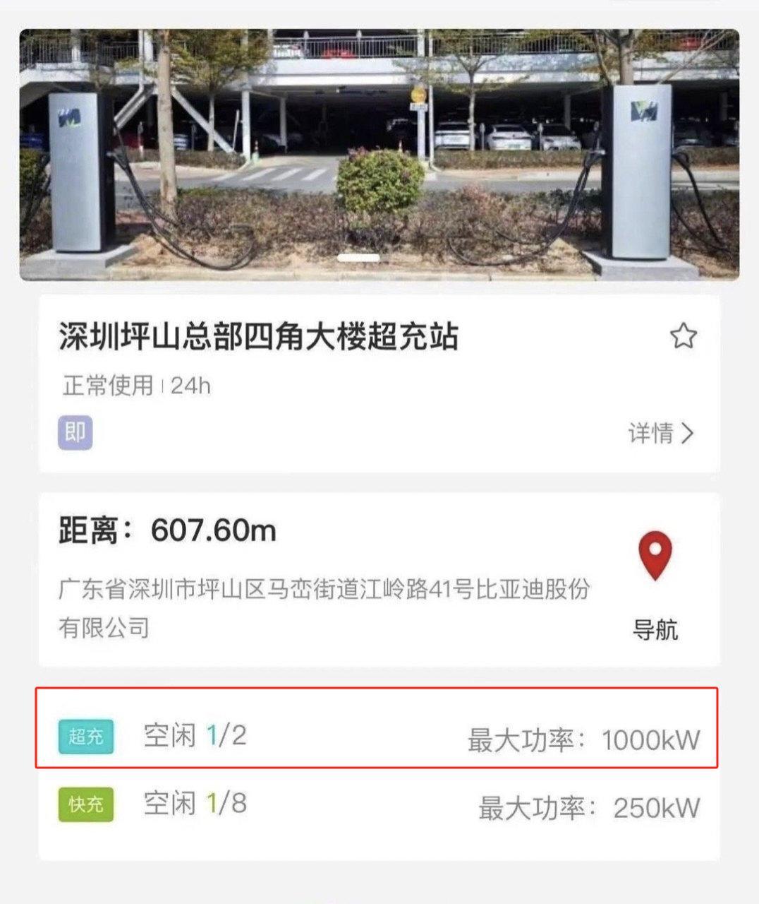 最近,在比亚迪总部六角大楼附近,上线了一款全新的超级快充桩,并且已经开始试运行,通过下单页面就能看到,这款超充桩的最高运行电压为1000V,最高电流为1000A,峰值功率达到1000kW,充电功率全球最高,十分炸裂。