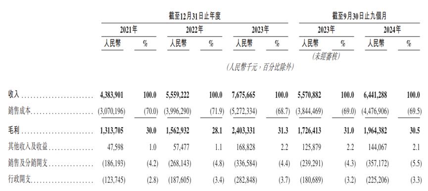 尽管2024年以来,古茗的门店规模仍在扩张,但在行业天花板下行的背景下,其也难以独善其身。招股书显示,2024年前三季度,古茗营收64.41亿元,同比增长15.6%;净利润11.20亿元,同比仅增长11.75%,相较往年的增速均大幅回落。