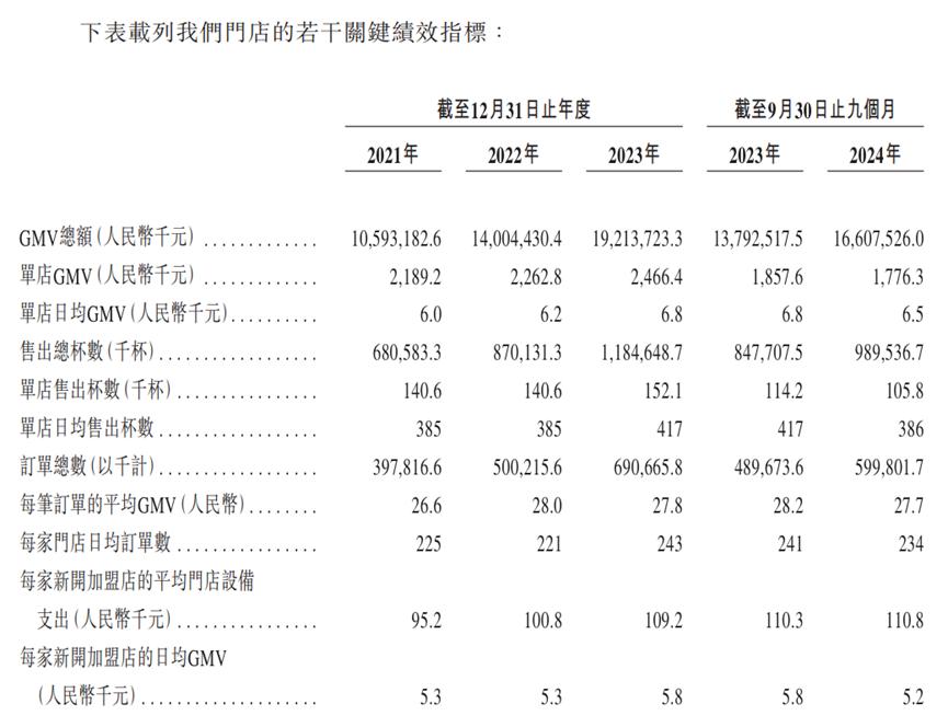 究其原因,古茗无奈地表示,2024年前三季度,“由于整体行业放缓及竞争加剧,与2023年同期相比,我们录得的单店GMV、单店日均GMV、单店售出杯数、单店日均售出杯数、每笔订单的平均GMV、单店日均订单数以及每家新开加盟店的日均GMV均有所减少。”