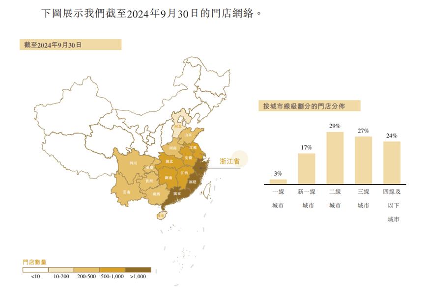 招股书显示,截至2023年底,古茗二线及以下城市的门店数量占门店总数的79%,其中更有38%的门店位于远离城市中心的乡镇。对比而言,中国其他前五大大众现制茶饮店品牌的门店位于乡镇的比重大多低于25%。