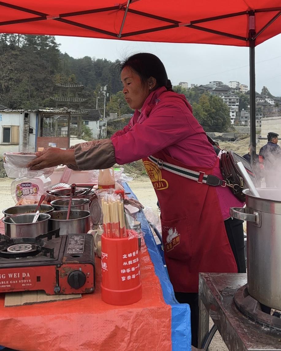 △去年在凯里的一个村子里过苗年,村口支着一个简单的粉摊,只卖辣鸡粉。/阿祯 摄