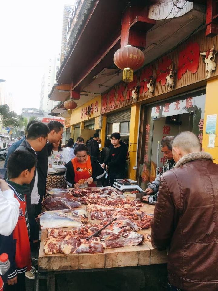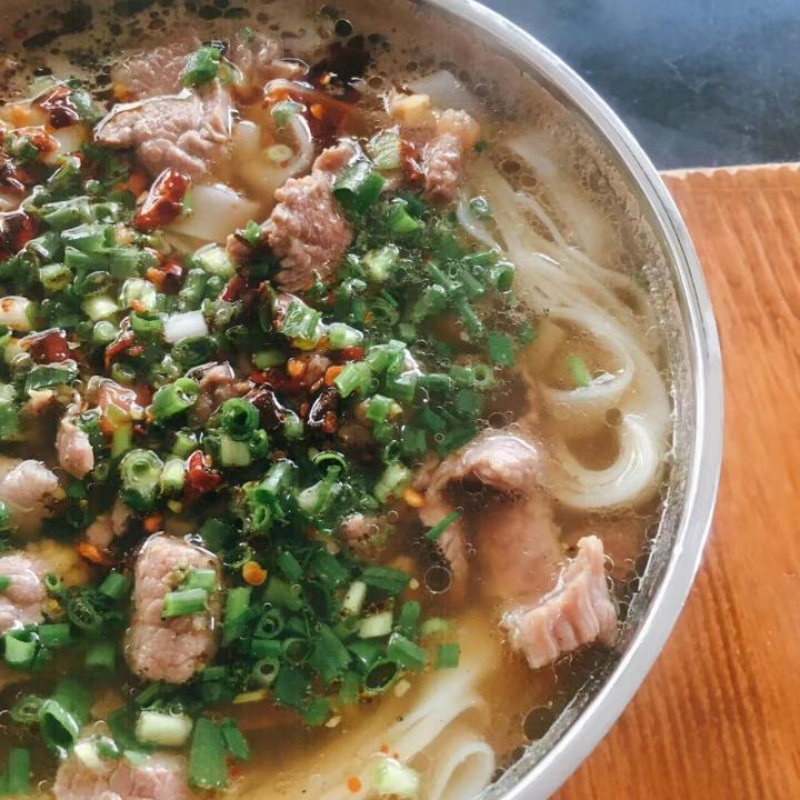△荔波现割牛肉粉。上一秒还是肉摊上新鲜的肉,下一秒就成为桌上让人垂涎欲滴的牛肉粉。/鱼小姐 摄