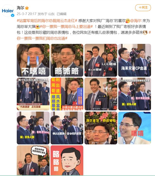 世界的海尔格局是打开的,老总周云杰的胸怀同样是开大的,据财联社报道:“其实网友把我P成'等待主人投喂的柴犬'时,我正在和研发团队讨论工业大模型部署。”周云杰在接受采访时笑称。这位素来低调的企业家,还在朋友圈写下:“网友的想象力是新时代的宝贵生产力,海尔永远向创新敞开怀抱”。