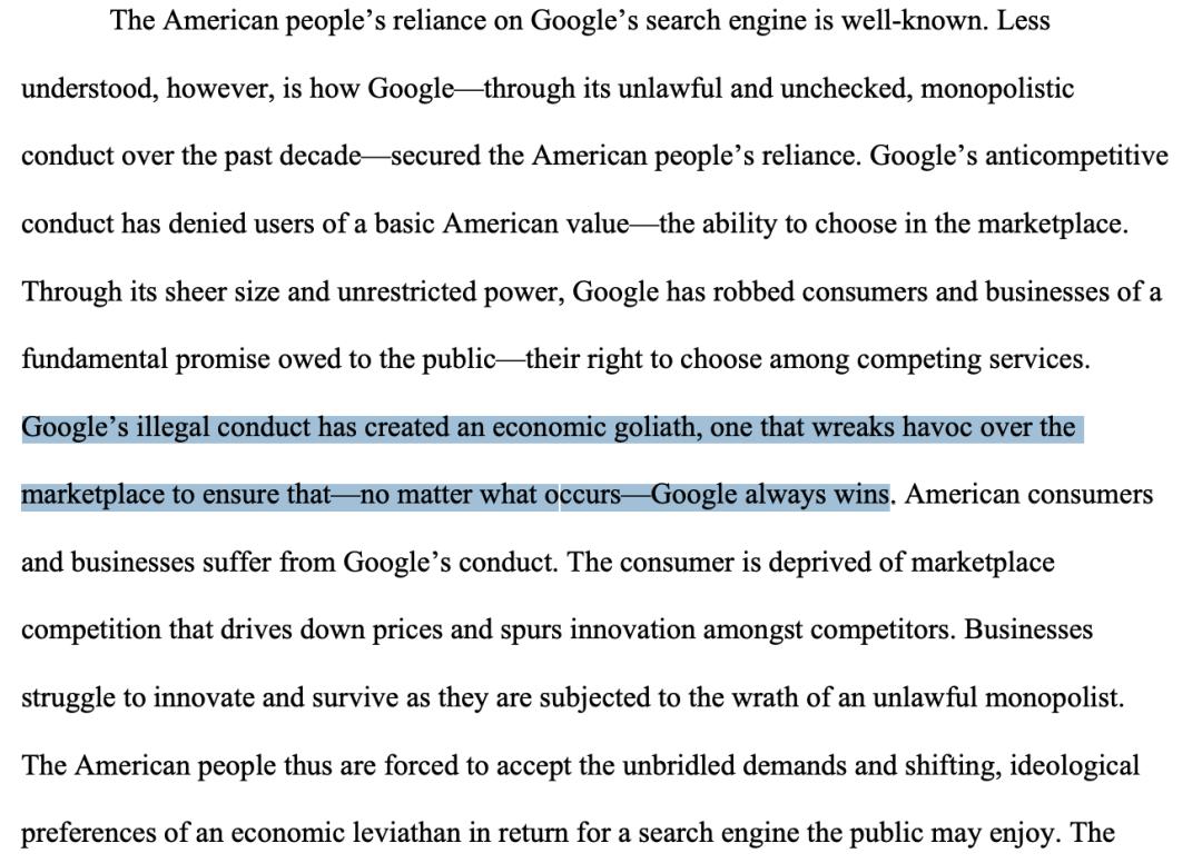 根据最新披露的司法部文件显示,美国司法部的态度依然强硬,直接在文件中写道:“Google 的非法行为造就了一个市场巨头,它在行业内肆意横行,确保无论发生什么,Google 始终是赢家。”