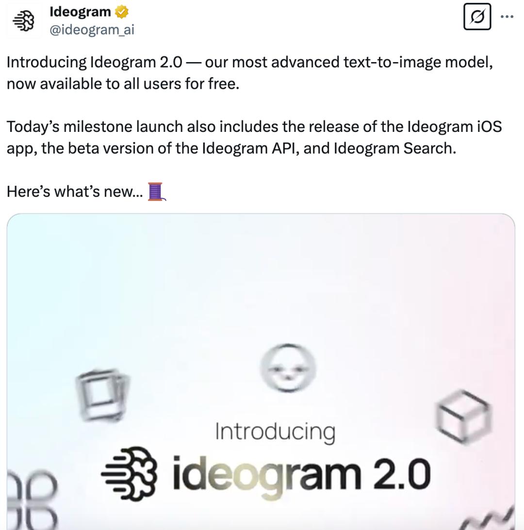 2024 年 8 月,公司发布了 Ideogram 2.0 模型,提供了现实主义、设计、3D 和动漫等多种风格,并进一步提升了在图像中生成文本的能力。