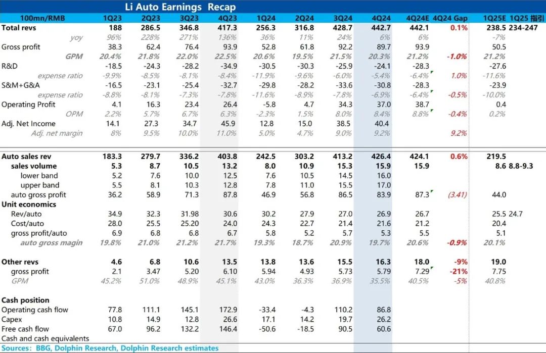 由于理想销量已经公布,最重要的边际信息在于:一、四季度毛利率;二、25年一季度业绩展望。