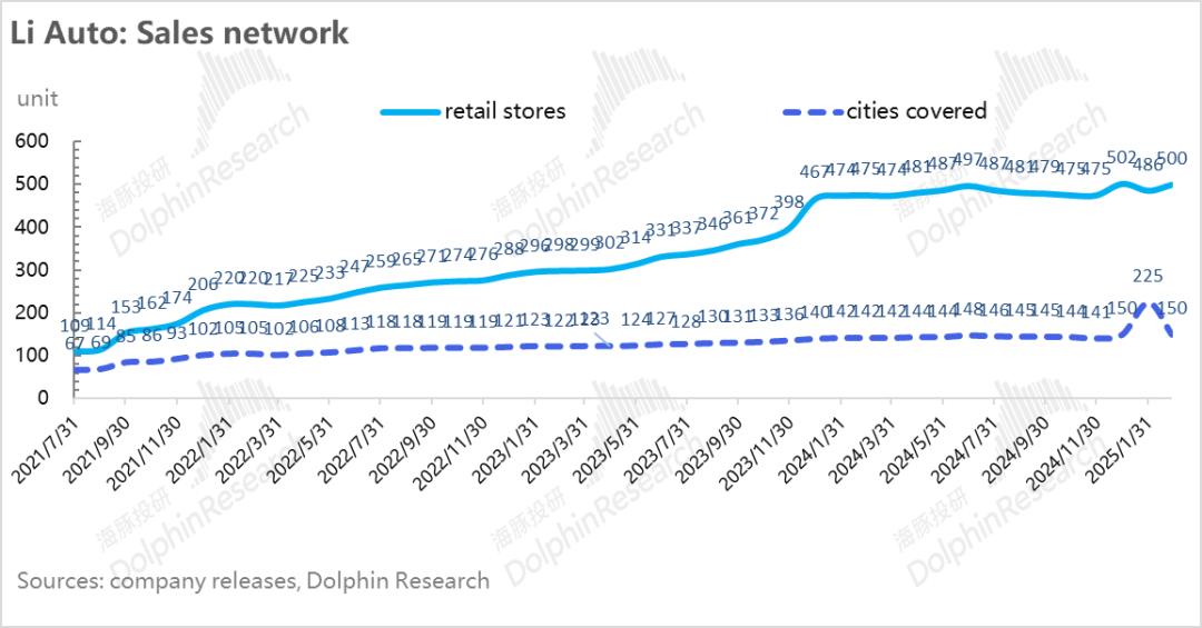 而在渠道建设上,理想四季度在继续做渠道拓展,门店数量和服务中心数量都在继续加快,但覆盖城市方面似乎渠道下 沉的不够快(四季度仅新覆盖了4个城市),而L6车型的较低定价导致的核心用户可能在二三线城市的比例较高。