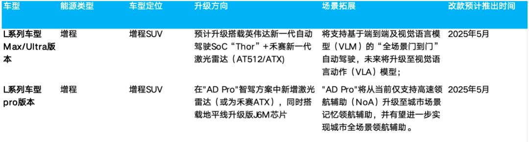 但从目前市场信息来看,理想的增程车型升级仍然主要集中在智驾的硬件领域,其他配置基本上与2024款保持一致,升级力度似乎不大,尤其是在2024年四季度确实看到了理想L系列增程竞争力在被瓦解以及2025年有更多对标理想L系列的竞品推出的情况下(目前的智界R7增程版,问界新车型M8-2025年4月上市,对标理想L7和L8, 以及小鹏下半年会发布的基于G9平台的增程车型),海豚君对于理想增程的基本盘是否稳固仍然较为担心。