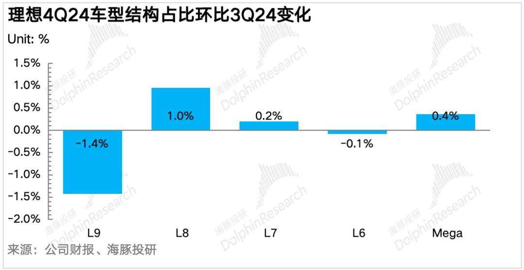 ② 从促销活动来看,四季度促销力度不大,基本盘L系列基本集中金融贴息上,真正的现金折扣不大(10月: 1.99%贷款费率,11月:2.2%贷款费率+L7/8/9/Mega 2000元购车补贴, 12月0.99%贷款费率),虽然会拖累点单价,但对卖车单价影响也并不大,所以最后卖车单价略超了市场预期。