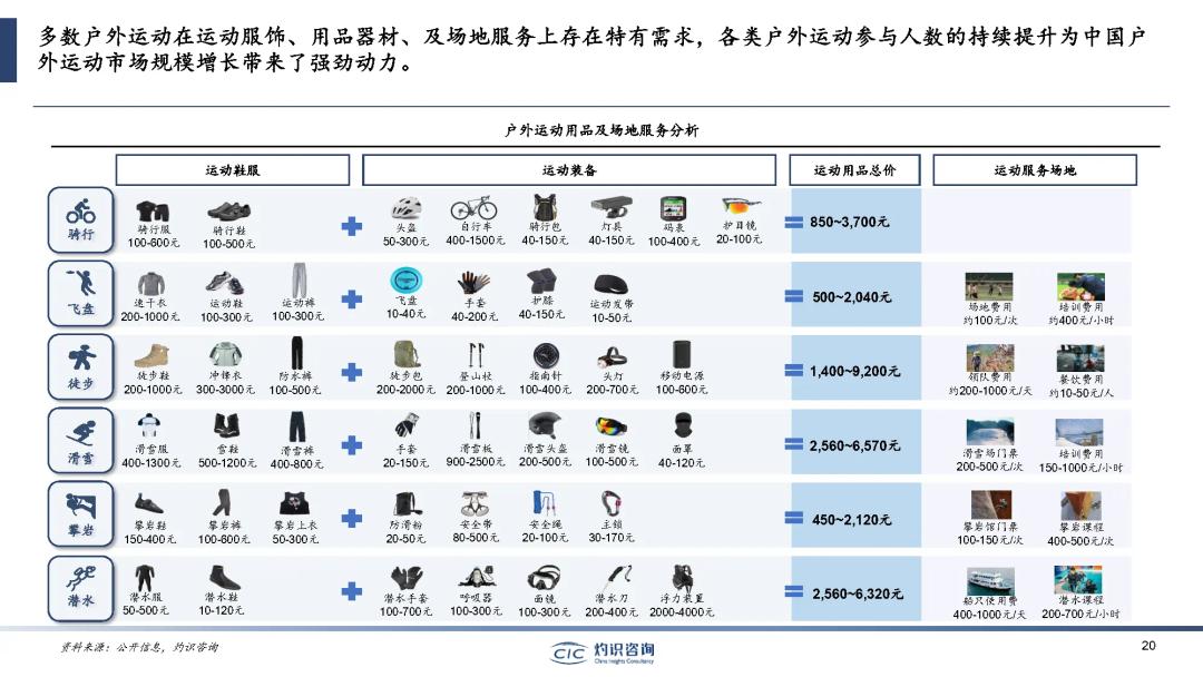 以骑行为例,从骑行服饰,到头盔、骑行包、灯具、护目镜等各种运动消费,总价可以从850元-3700元间浮动。