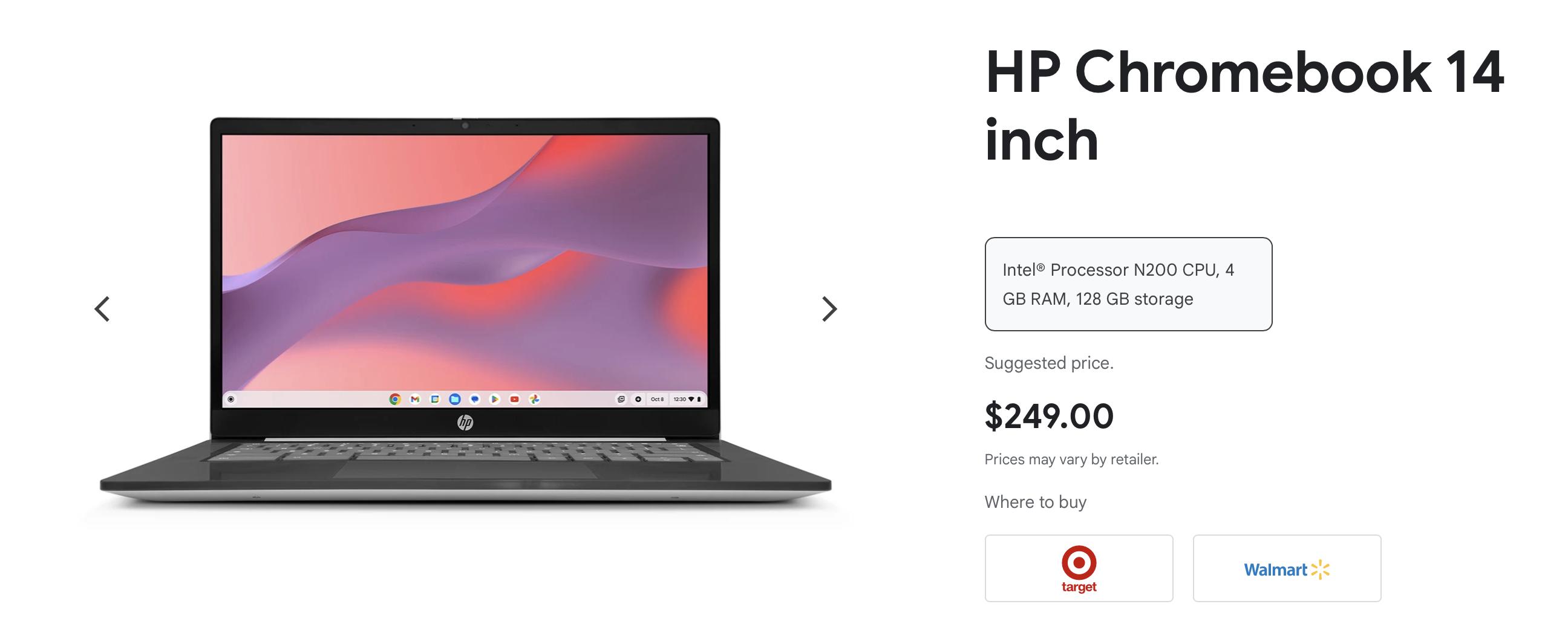 硬件需求低到离谱,也让Chromebook展现出了极高的性价比。年初参与CES 2025报道期间,小雷曾到访美国多家电器门店(北美大区独有的线上线下同价体系门店)。根据小雷的观察,一台运行Windows的「正经」笔记本电脑定价基本都在450美元(人民币3250元)以上,在350美元(人民币2500元)以下的价位,消费者能选的只有Chromebook。