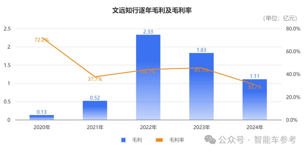 2024年全年,文远知行的毛利为1.1亿元,同比下降39.75,其中包括1600万元的产品毛利,以及9470万元的服务毛利。