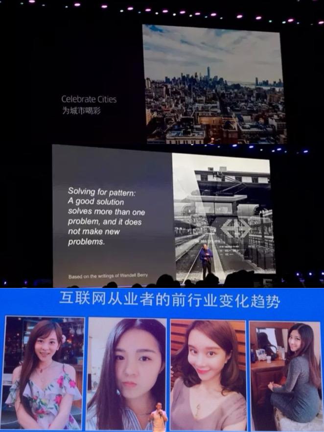 刘超的这场演讲,可谓槽点满满。与Uber设计总监Ethan Eismann、微软美国总部首席设计官兼副总裁Michael Gough所展示的“高大上”的PPT相比,百度UE总监刘超的PPT画风突变,显得有些难等大雅之堂。