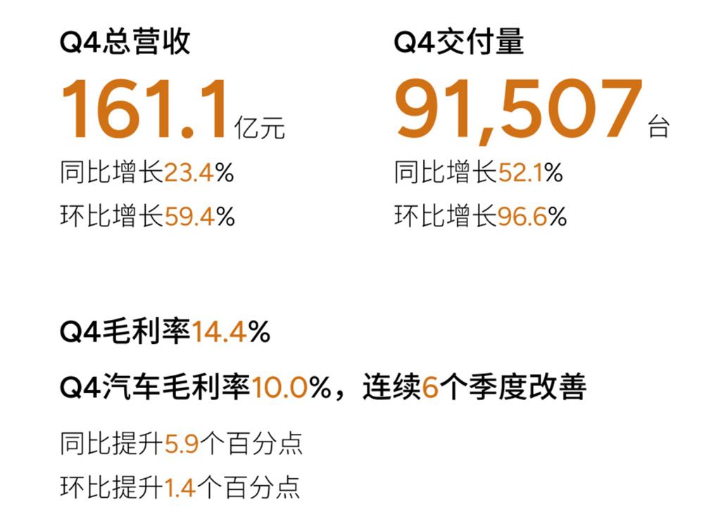 结合小鹏汽车年报来看,小鹏汽车2024年的财务状况得到改善,特别是在第四季度,营收、交付量、毛利再度迈上了一个全新台阶。