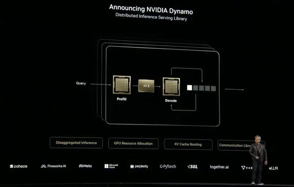 在黄仁勋的蓝图中,“AI 工厂” 将成为未来企业的标配。这不仅是算力的堆砌,更是 “Token 吞吐量” 与 “响应速度” 的极致平衡。为此,英伟达推出了 Dynamo 操作系统,这是一个开源的 “分布式推理服务库”,旨在动态分配算力,使单机架集成 60 万组件,液冷技术支撑百亿亿次算力。