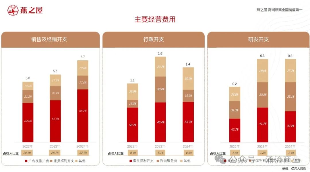 2024年,以100元的燕之屋产品为例,里面含32.7元销售及经销成本(含广告费)、6.6元行政开支成本、1.4元研发成本,能为公司赚得净利润7.8元。