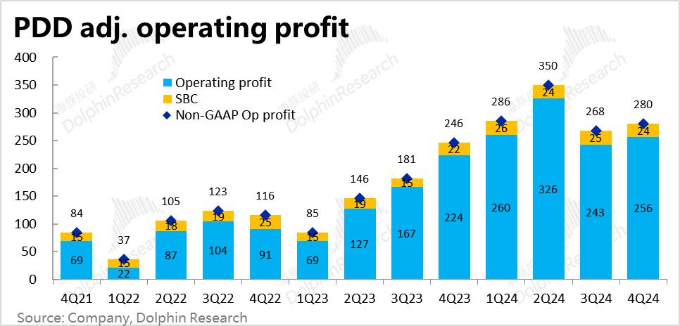另外值得关注的是,本季的研发费用同比增速明显拉升到32%,实际支出37.8亿,同环比来看都增长了8~9亿。虽然公司并未在公告中解释,但我们猜测和可能是拼多多也正在研发AI类功能,但尚未对外公开推广宣传。