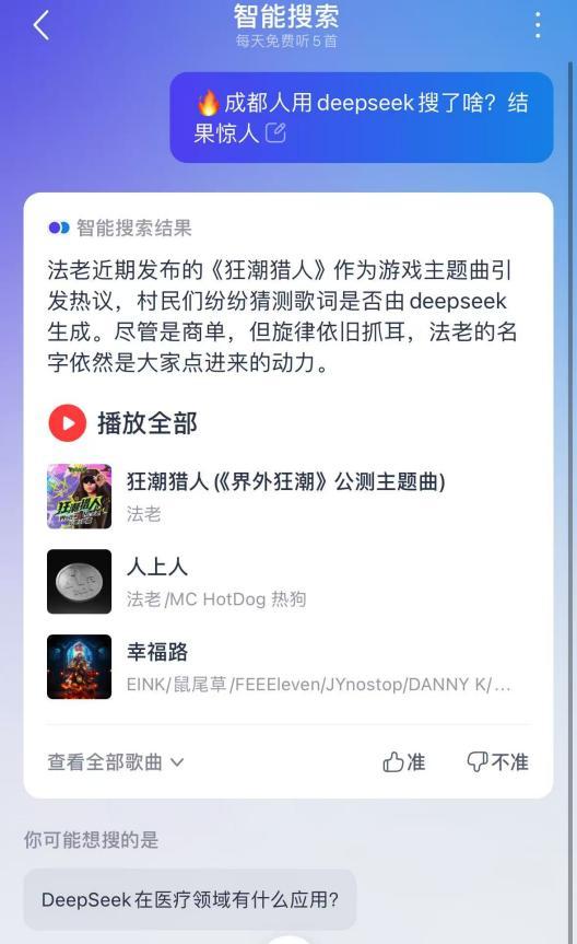 而网易云音乐则全面接入DeepSeek,加速AI技术的应用,以增强个性化推荐服务,提升用户体验,本质上是夯实其社区护城河。腾讯音乐娱乐集团首席执行官梁柱,也在财报发布后提到,“展望2025年,我们将利用AI来增强个性化服务,并为用户带来更多新鲜的音乐体验。”