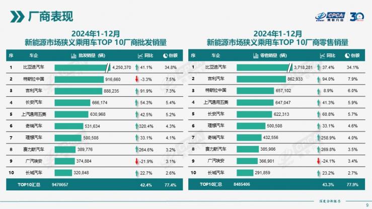 2024年1月-12月,在新能源市场狭义乘用车TOP 10厂商批发和零售销量排行前十榜单里,蔚来未出现,同期理想汽车入围。再看蔚来,2024年全年,该公司共交付新车约22.2万辆,同比增长38.7%。